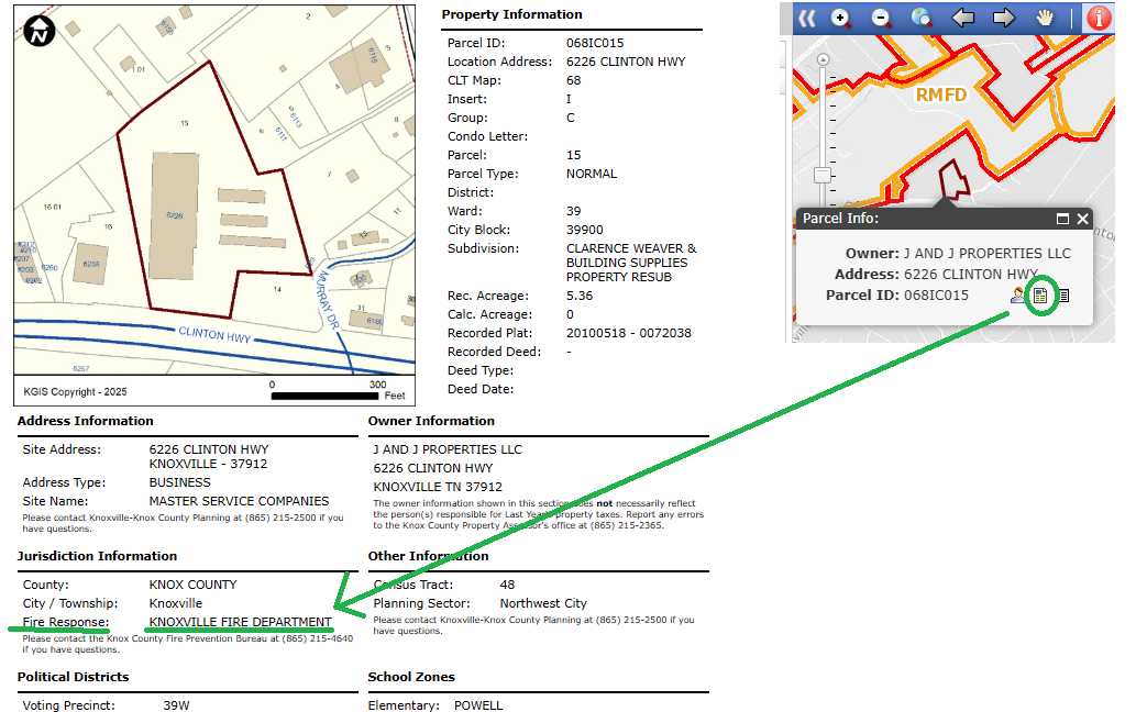 And lastly, the Parcel Map & Details Report has also been adjusted to now include the Fire Response (aka District) for each parcel...also located in the Jurisdiction section. (see below image)